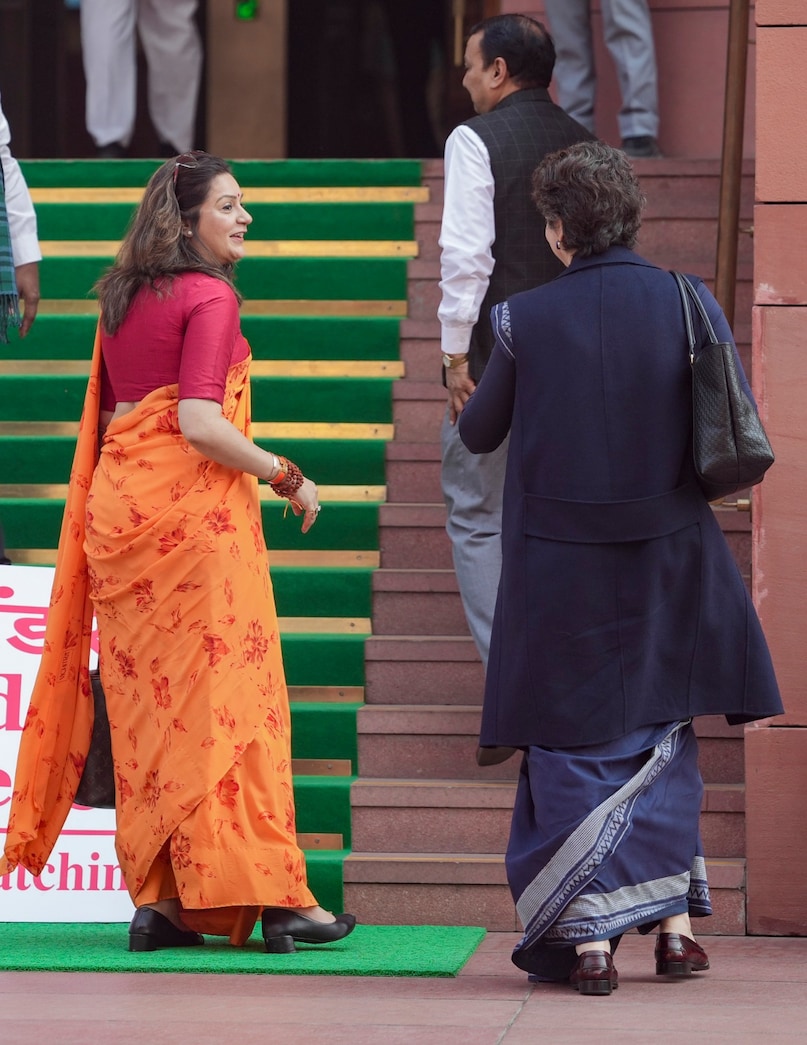 आज विपक्षी एकजुटता की एक खास तस्वीर भी सामने आई. शिवसेना (UBT) की सांसद प्रियंका चतुर्वेदी और कांग्रेस सांसद प्रियंका गांधी वाड्रा संसद परिसर में एक साथ नजर आईं. दोनों नेताओं के बीच बजट और देश के मौजूदा राजनीतिक हालात पर गंभीर चर्चा हुई. प्रियंका गांधी ने इस दौरान सांसदों के निलंबन और लोकतंत्र की गरिमा जैसे मुद्दों पर सरकार को घेरा. वहीं, प्रियंका चतुर्वेदी ने भी सरकार की नीतियों और हालिया ‘वंदे मातरम’ प्रोटोकॉल को लेकर तीखी प्रतिक्रिया दी. (PTI)