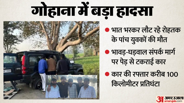 पांच जिगरी दोस्तों की मौत:खुशियों के आंगन में मातम की दस्तक से रुक गया डीजे, और रो पड़ा पूरा गांव; भीषण हादसा – Big Accident In Gohana Of Sonipat Five Youths From Rohtak Died