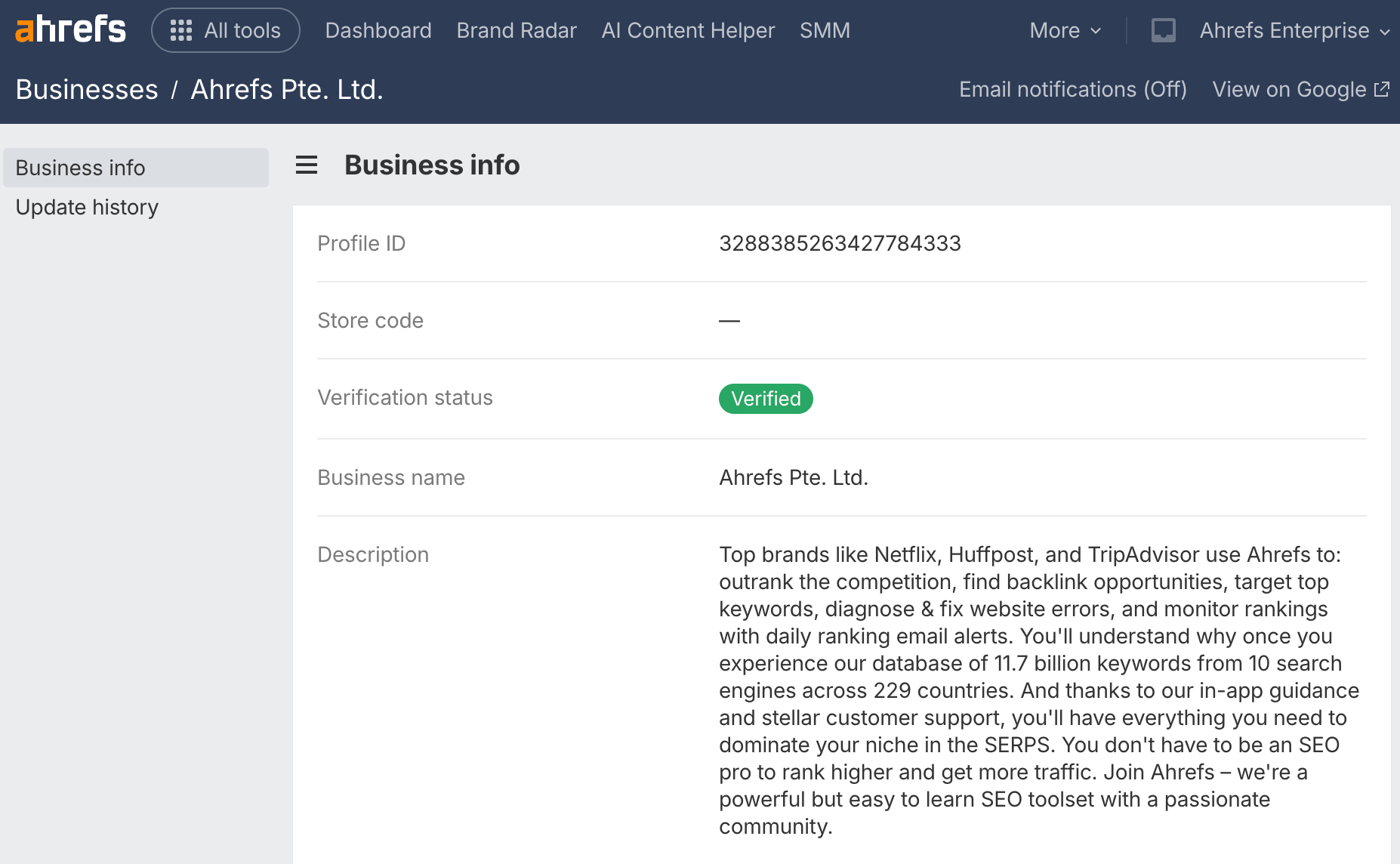 To stay on top of changes, use Ahrefs’ GBP Monitor.