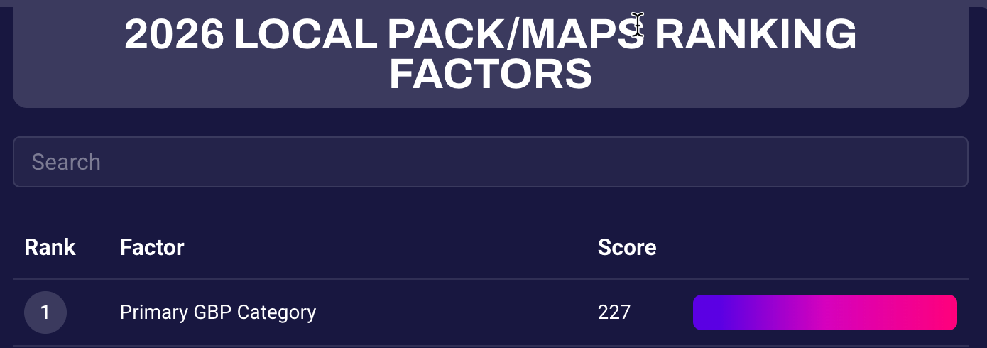According to Whitespark’s 2026 data, your primary category is the #1 ranking factor for Google Maps.