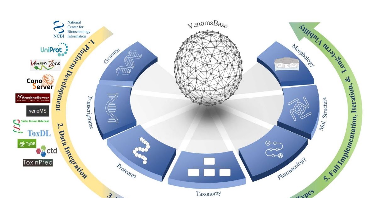 Venomous animal research is hampered by fragmented, specialized, and non-interoperable databases (isolated genomic, proteomic, and ecological data). Despite the immense promise of venomous organisms to yield novel bioactive compounds for pharmacological and evolutionary applications, the informatics landscape for such taxa has remained patchy, lacking macro-scale integration across species. We present VenomsBase, an integrated, modular resource that synthesizes multi-omics data, ecological metadata, and functional annotations for venom-bearing organisms. Following the FAIR guidelines, VenomsBase combines an ontology-driven architecture with big-data cloud workflows for sequence integration, motif clustering, 3D display, and linking ecological metadata. Standardized tools and training modules facilitate worldwide access to resources for both researchers in developed countries and in resource-limited areas. Its plug-and-play design allows for integration of additional analytical modules and extension to other species. One can also examine evolutionary trends and connect venom chemistry to ecological niches. VenomsBase would (i) accelerate the pace of venom discovery, whether for therapeutic purposes or evolutionary significance, by providing validated, cross-referenced data sets and community-driven curation, and (ii) foster an open, just, and innovation-ready venom research ecosystem.
