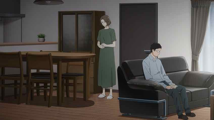 Meanwhile Betty and Veronica are at the family restaurant too. But, being, fifteen, they won’t even sit at the same table as their “moms”. Asa is waxing on about how forgetful and disorganized Makio is – which kind of crosses the border into meanness, if you ask me – a charge Makio of course can’t deny. Emiri says the quiet part out loud, speculating that Makio might be neurodivergent, because to an extroverted 15 year-old anyone different must be (Asa has never heard of the term). Eventually the teeny boppers head off to buy a swimsuit and the adults get a little more personal in their conversation.