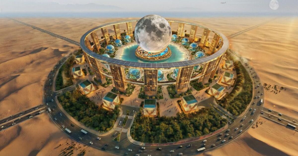 If realized, its centerpiece would be what’s described as the world’s largest and tallest true spherical building. At 271 m (889 ft) in diameter and 312 m (1,023 ft) tall, it would dwarf the Sphere in Las Vegas, which measures 157 m (515 ft) in diameter and 112 m (367 ft) in height.