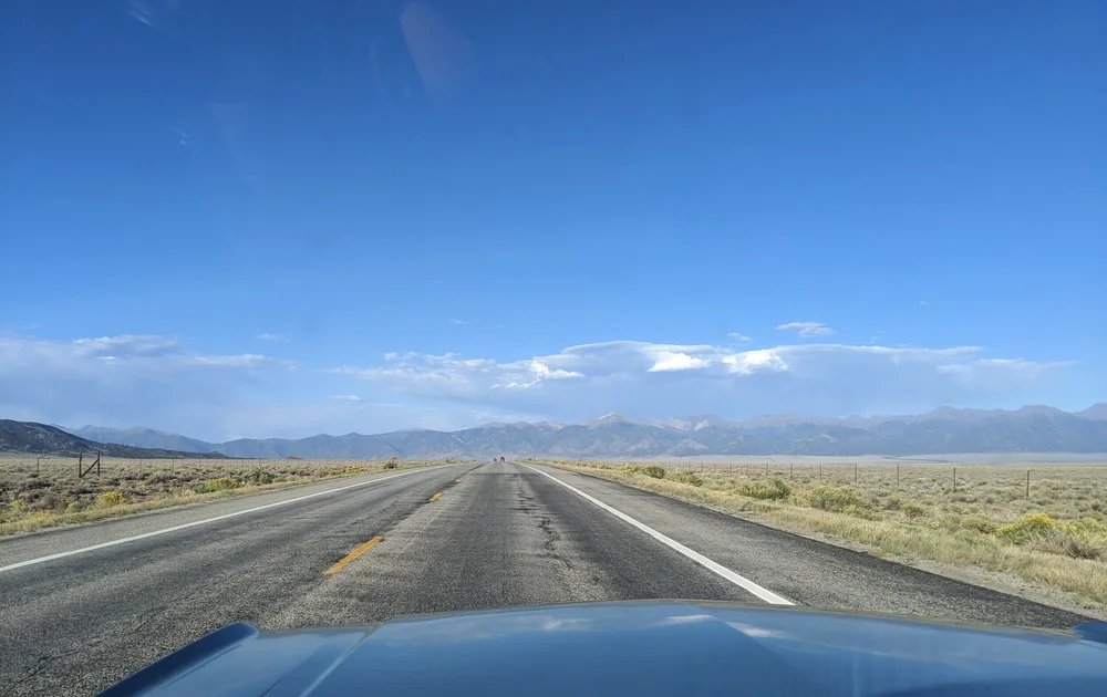 When I woke up the next morning, Kristina had already left for the airport. I decided to stroll the town before heading out on the solo drive north. I was hoping my car held up through the heat the day before. At the end of my stroll I passed by my car, as I often do just to check on it, and noticed radiator fluid pooling up underneath the engine. Lucky for me, the issue was small and completely fixable in the hotel garage with the tools I had in my trunk. I got to work, loosening the lower radiator hose and draining the coolant. Then I tightened the hose, filled her up and let her run to test out my work. So much for beating the blazing sun by getting out early but at least I was back on the road. I headed north on Highway 285, a road known for exceptional scenery. As I passed the town of Espaรฑola, I careened along the red cliffs and canyons, driving 85 miles to the Colorado border. From there the land opened up and the view became expansive. The scale of the landscape is difficult to comprehend in Colorado; the mountains so tall, the prairies so vast, the houses so tiny. I felt humbled and inspired; and as I pulled into historic Buena Vista, I felt grateful. I made it!