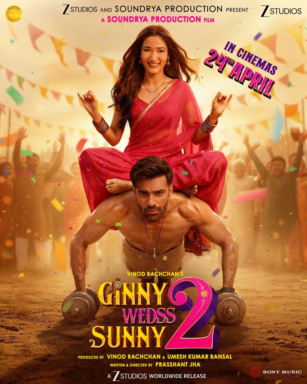 Presented by Zee Studios and Soundrya Production, Ginny Wedss Sunny 2 is slated to release in theatres on 24 April 2026. The film is produced by Vinod Bachchan and Umesh Kumar Bansal, with Prasshant Jha serving as writer and director.